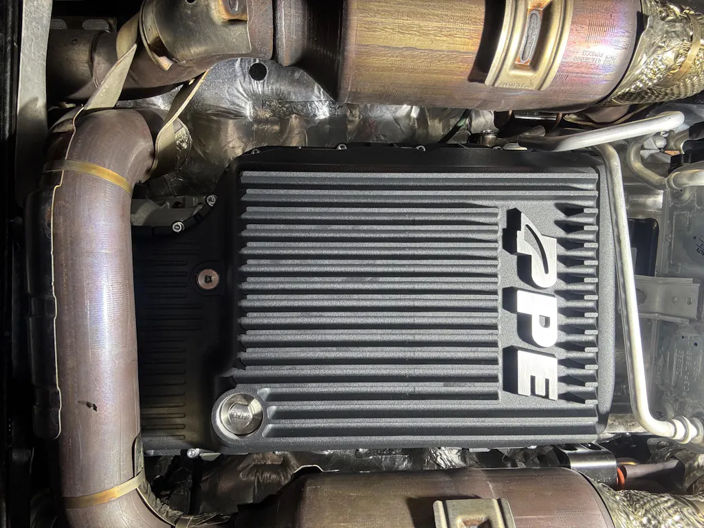 Cast from high-grade A356.0-T6 aluminum alloy, the PPE transmission pan offers 5 quarts of additional fluid capacity, ensuring long-lasting heat management and performance.